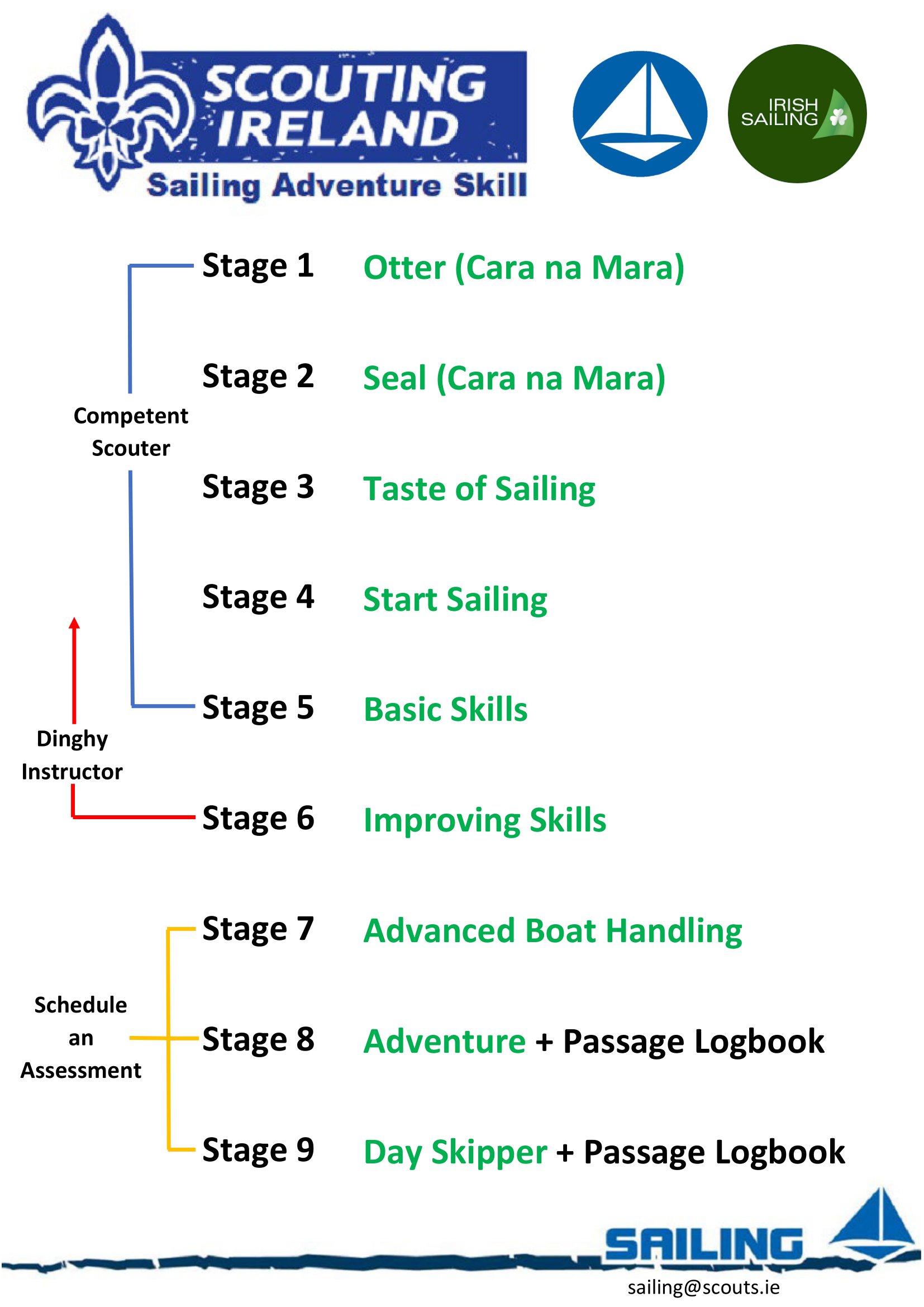 Any Scout holding any Irish Sailing Certificate should be presented with their relevant Sailing Adventure Skill.