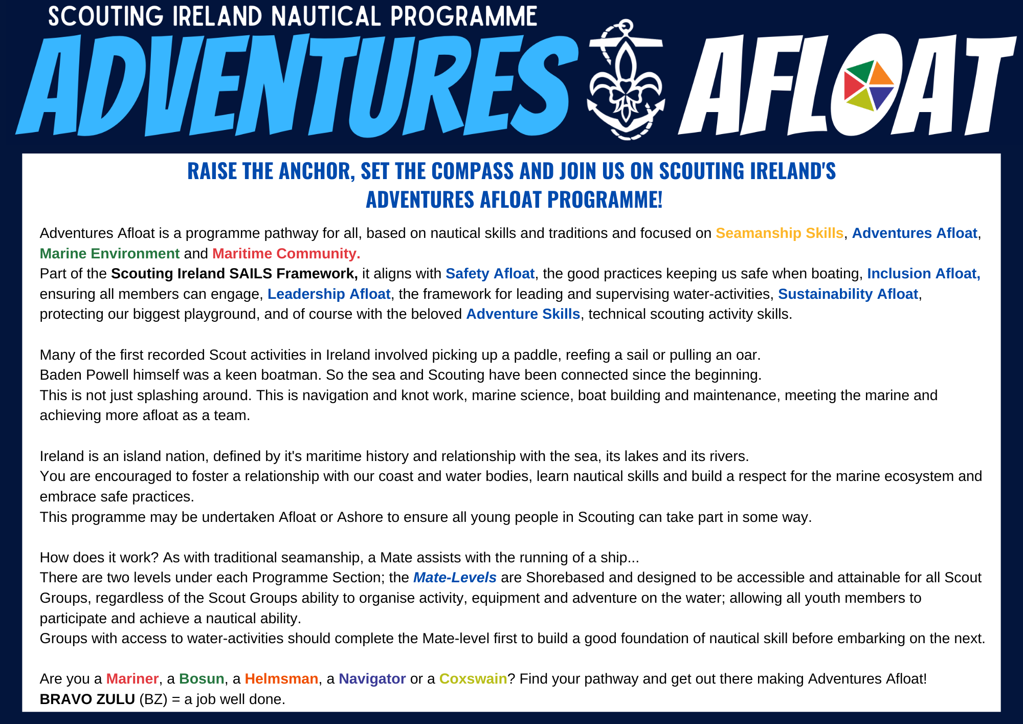 Download Adventures Afloat PDF This document is best printed Landscape. Double-sided on short edge. Safety Afloat Guidance Adventures Afloat Resources Schedule a Workshop
